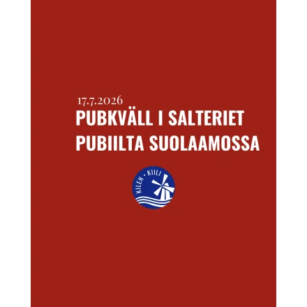 17.07.2026 19:00 – 17.07.2026 23:00 Välkommen på pubkväll till Salteriet! De trevliga pubkvällarna nere vid Salteriet får en fortsättning även i sommar. Trubaduren Lukas Djupsjöbacka uppträder i Salte…
